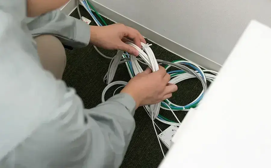 建物内外にケーブルを美しく配線し、通信機器同士が正しく接続されるよう丁寧に固定・施工します。